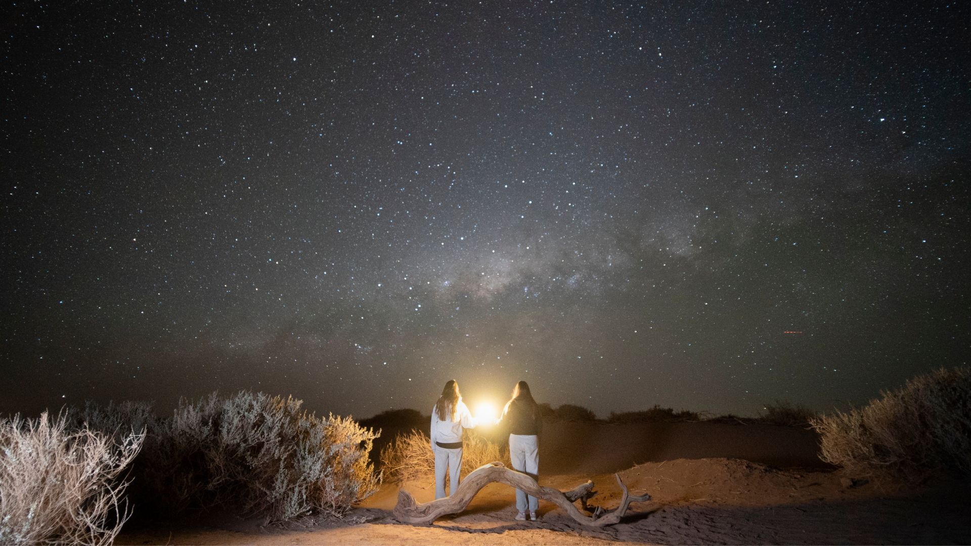 Comenzamos con observación a simple vista, tal como lo hizo la humanidad durante miles de años. Identificamos constelaciones, planetas y movimientos del cielo, aprendiendo a orientarnos con las estrellas. Es un momento de conexión directa con el cosmos — y con el silencio del desierto.